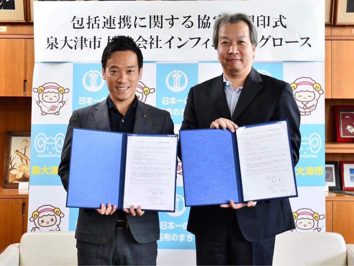 2023.09.01 行政 大阪府泉大津市と包括連携協定の締結 大阪国際都市計画 2019年10月にFirst study大阪泉大津校を誘致開校し、これまでに泉大津市と数々のイベントを市民の方々とともに取り組んできました。改めて包括連携協定を締結し泉大津に貢献できるように努力し続けます。